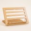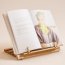 Her får du et elegant læsestativ i træ. Læsestativet kan bruges til bøger, magasiner og tablets. Læsestativet har en bred anvendelse og kan fx bruges til at holde en kogebog, en god roman, et Femina-blad eller den helt tykke amerikanske studiebog. Vinklen på læsestativet kan nemt indstilles på bagsiden, hvor du kan vælge mellem 3 forskellige vinkler. Læsestativet giver god aflastning i skuldre, arme og hænder, så du let og ubesværet kan sidde og læse i længere tid. På forsiden har læsestativet to "vridere", som holder siderne på bogen på plads. Langt de fleste bøger passer i læsestativet - også tykke romaner og tykkere studiebøger. Den hylde som bogen hviler på er 28 cm bred og 3,5 cm dyb. Når stativet ikke bruges kan det foldes sammen, så det bliver helt fladt. Det fylder ikke meget og kan nemt ligge i en taske.